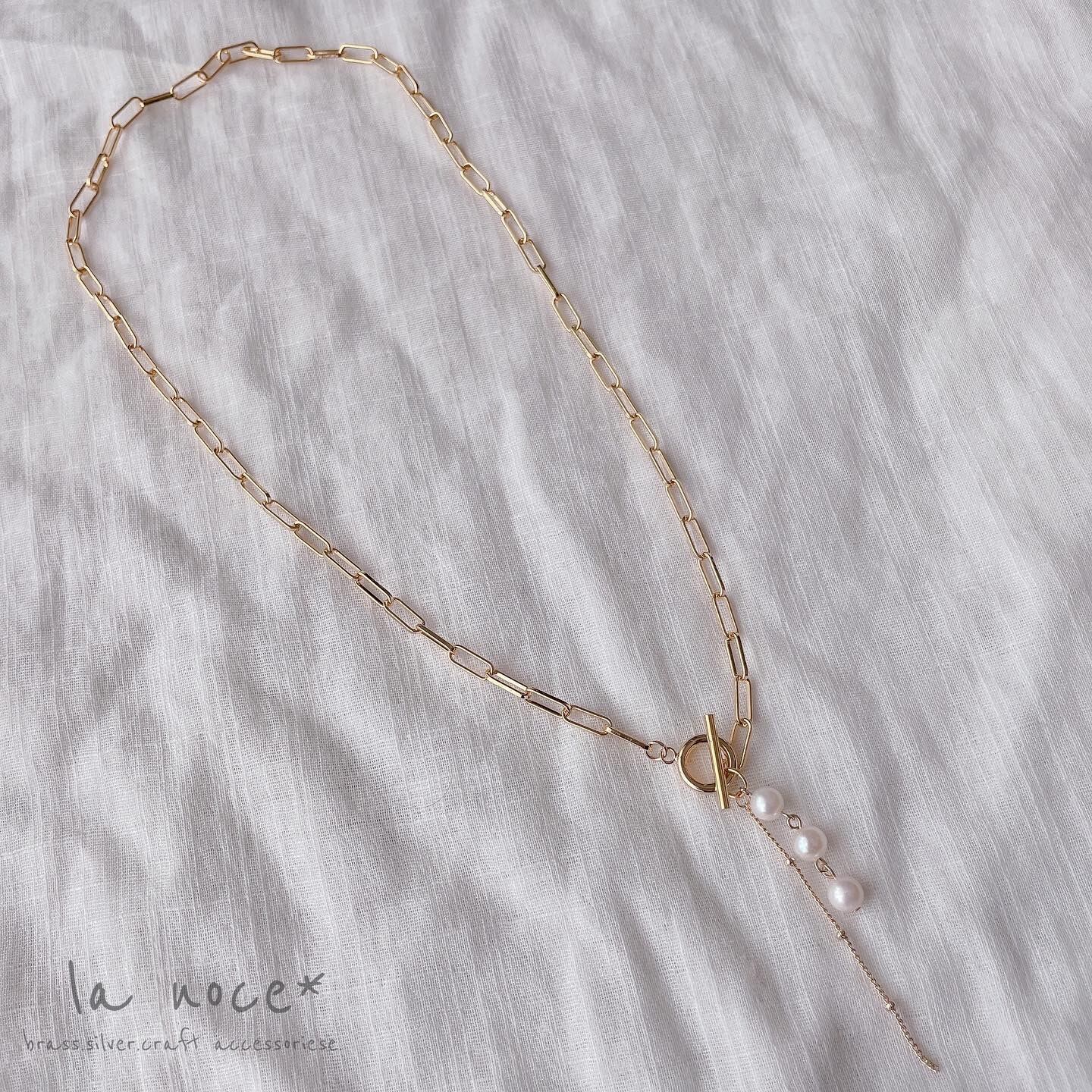 casual*ビッグチェーン×淡水パール&チェーン*マンテルネックレス